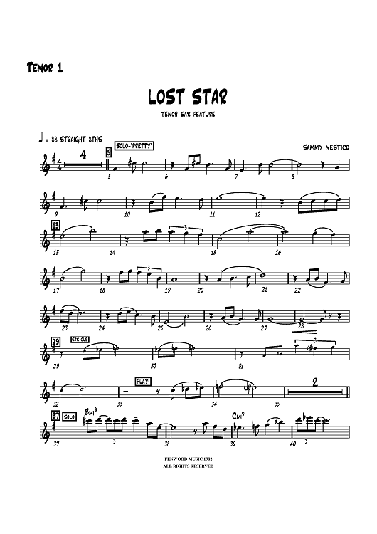 "Lost Star - Tenor Sax 1" Sheet Music by Sammy Nestico