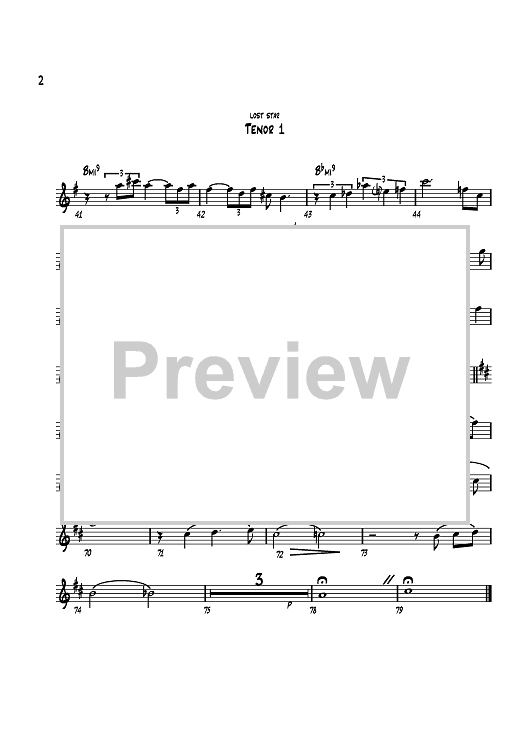 Style: Ballad (Tenor Sax Feature) Rance: F5 Eb5 The first 12 bars of Lost Star asks for a good balance and presence from the rhythm section (preferably electric). We need some real dynamic change at bars 29 and 61, so make it happen! (Nice and full) The last ensemble (bar 61) has some saxophone counter-melody that should be heard strongly.