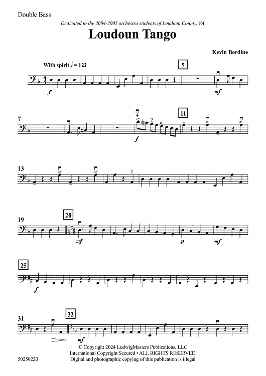 Digital Sheet Music for Loudon Tango - Double Bass by Kevin Berdine scored for Orchestra; id:503916