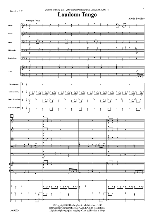 Digital Sheet Music for Loudon Tango - Full Score by Kevin Berdine scored for Orchestra; id:503911