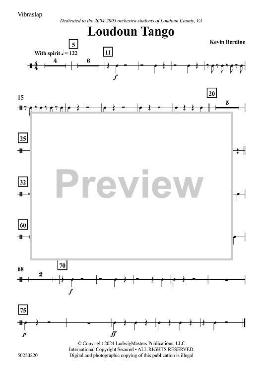 "Loudon Tango - Vibraslap" Sheet Music by Kevin Berdine