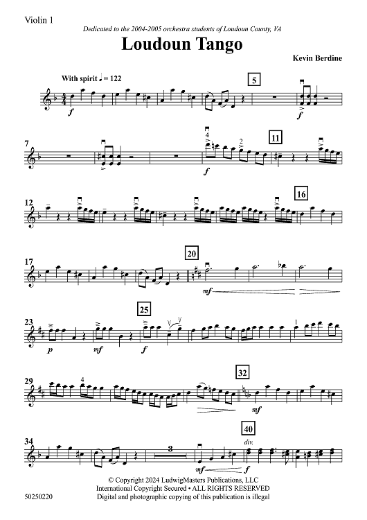 "Loudon Tango - Violin 1" Sheet Music by Kevin Berdine