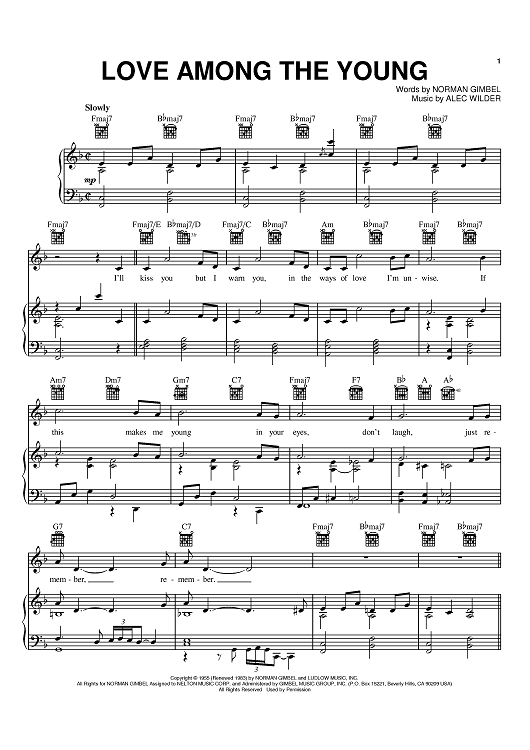 Digital Sheet Music for Love Among The Young by Alec Wilder, Norman Gimbel, Rosemary Clooney scored for Piano/Vocal/Chords; id:373610