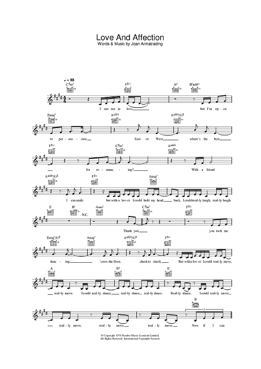 Digital Sheet Music for Love And Affection by Joan Armatrading scored for Lead Sheet; id:383004