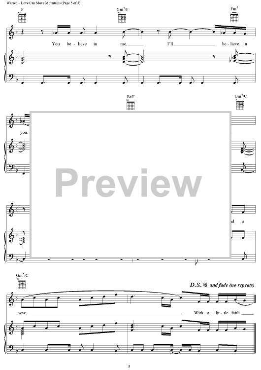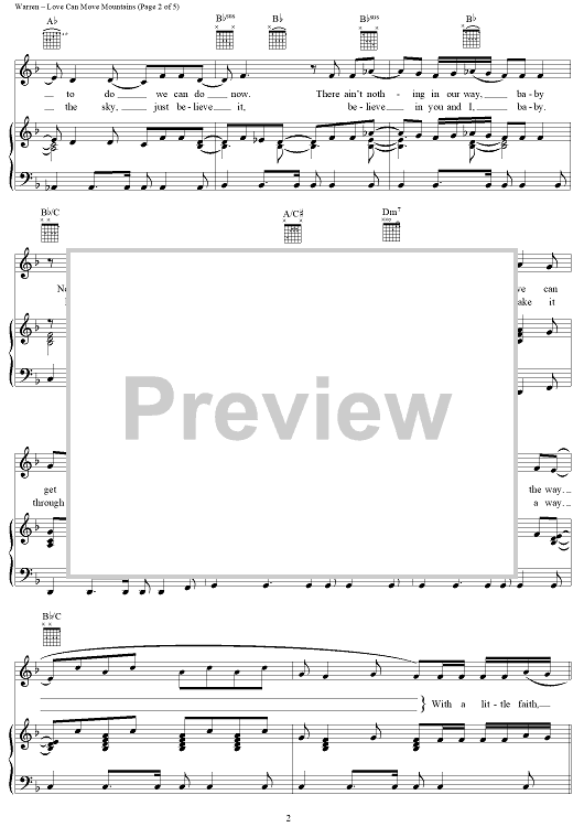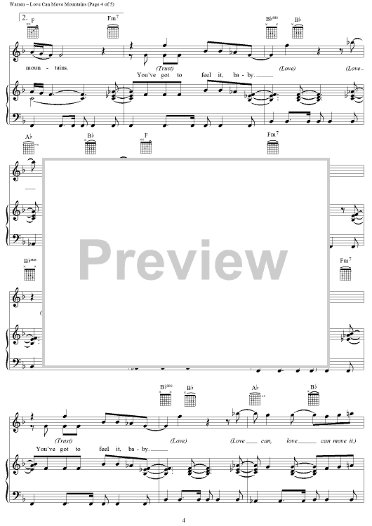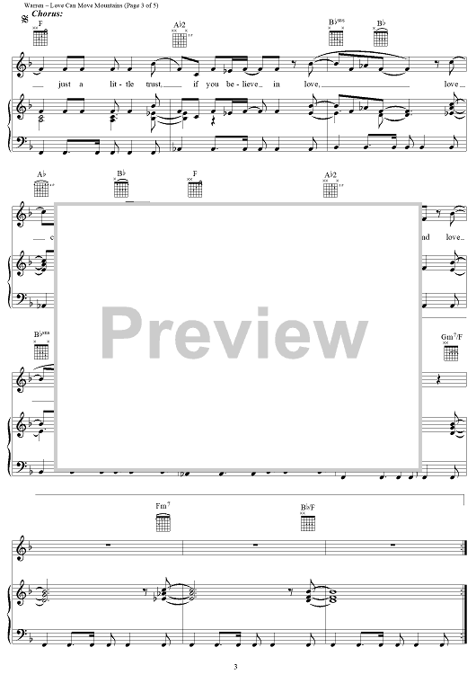 Digital Sheet Music for Love Can Move Mountains by Diane Warren, Celine Dion scored for Piano/Vocal/Chords; id:108909