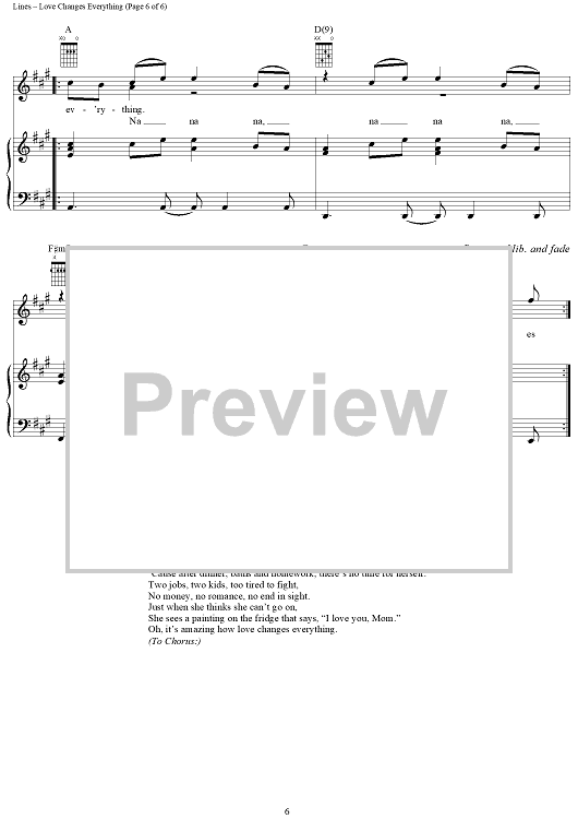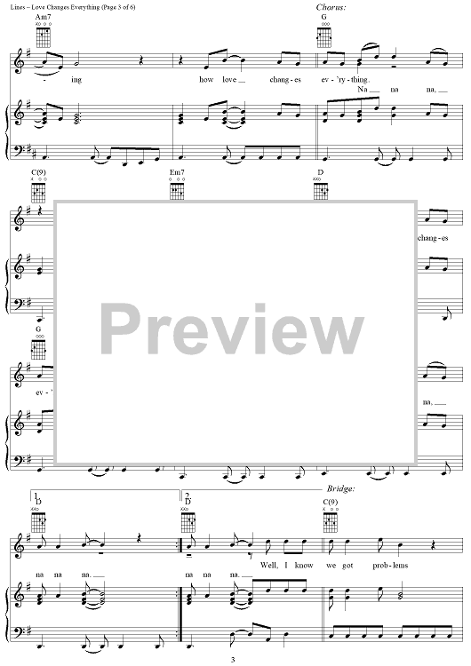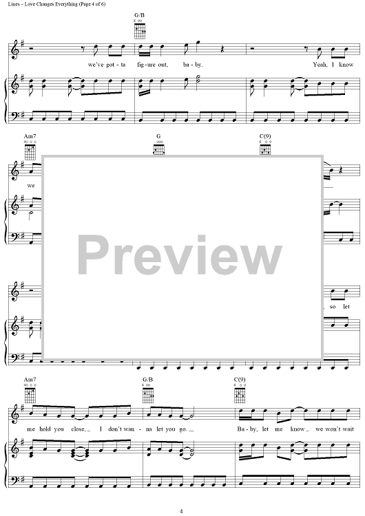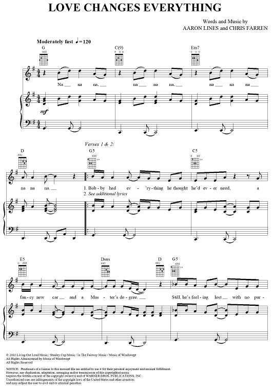 Digital Sheet Music for Love Changes Everything by Chris Farren, Aaron Lines scored for Piano/Vocal/Chords; id:297029