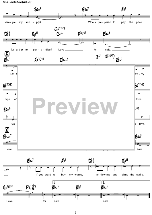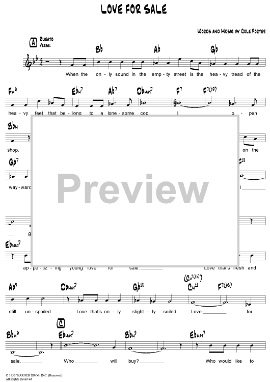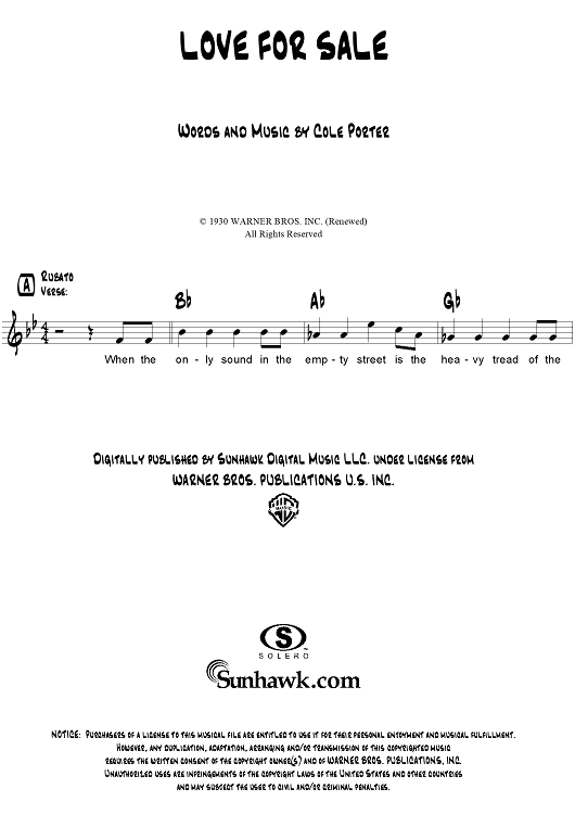 Digital Sheet Music for Love For Sale by Cole Porter scored for Lead Sheet; id:307561