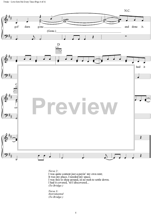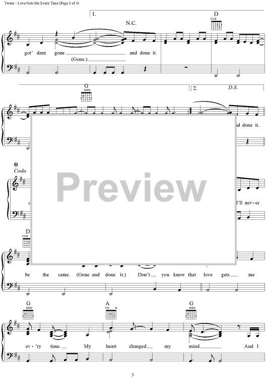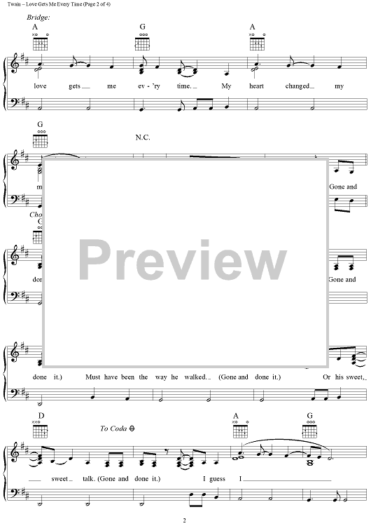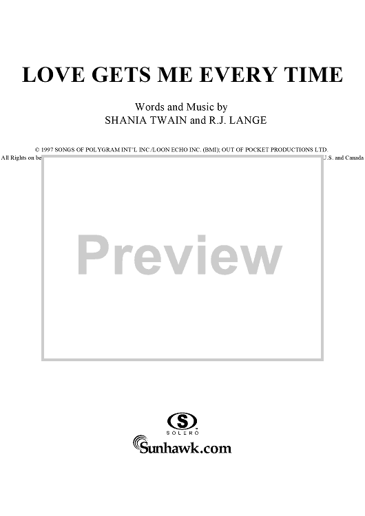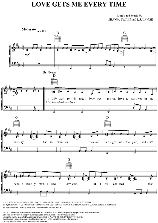 Digital Sheet Music for Love Gets Me Every Time by Shania Twain, Robert Lange scored for Piano/Vocal/Chords; id:112025