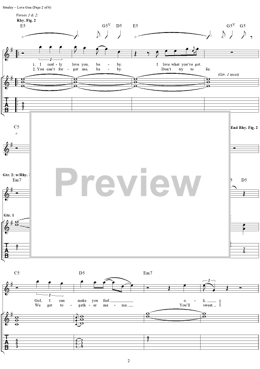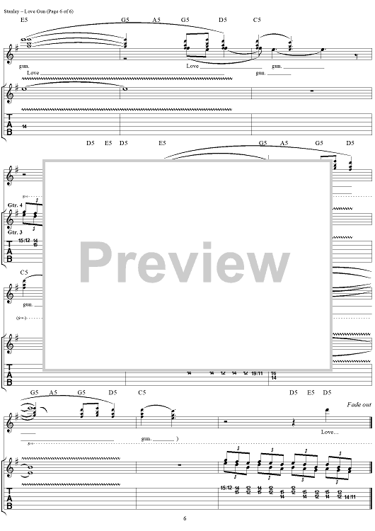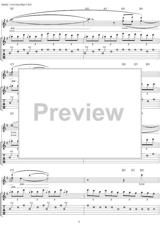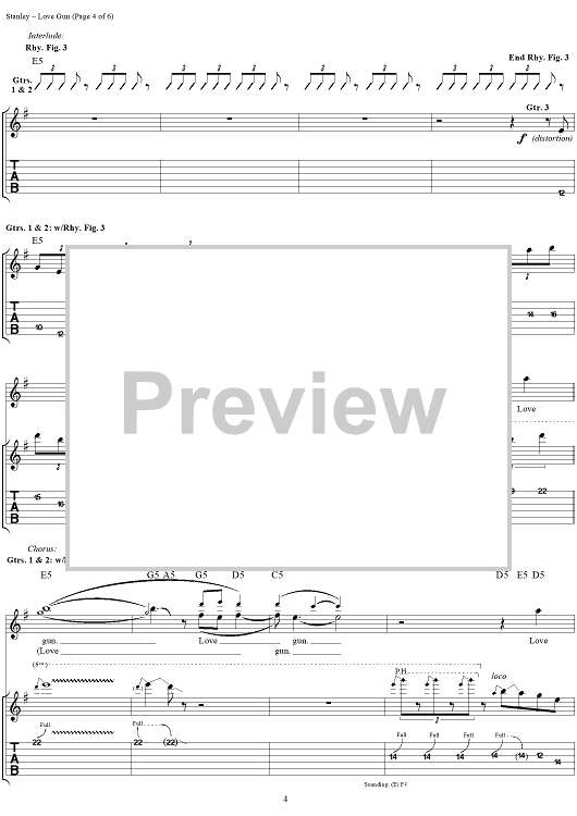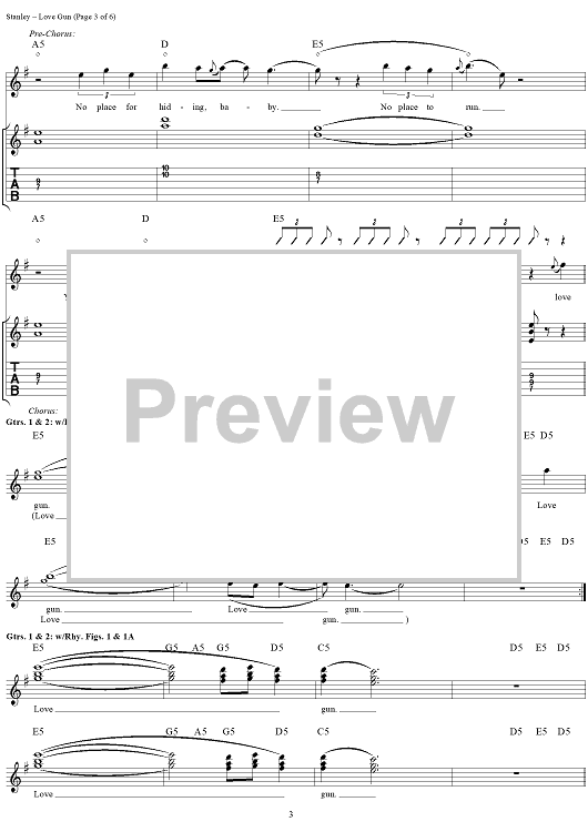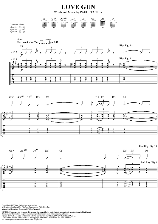 Digital Sheet Music for Love Gun by Paul Stanley, KISS scored for Guitar Tab/Vocal; id:206959