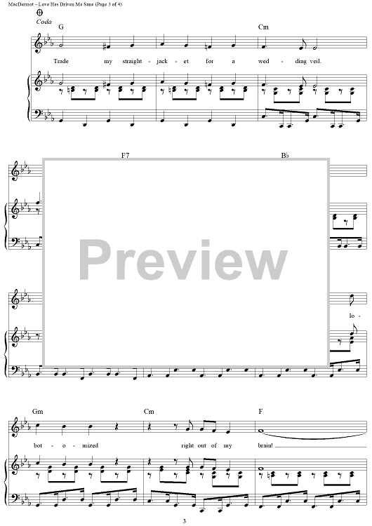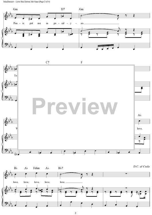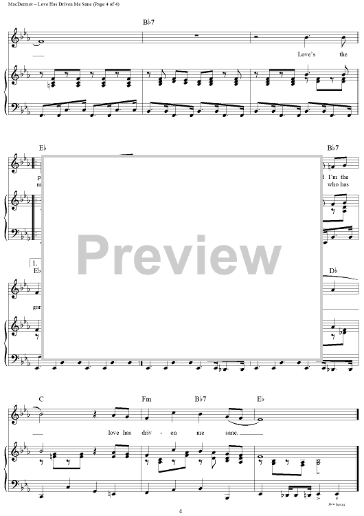 Digital Sheet Music for Love Has Driven Me Sane by Galt MacDermot, John Guare scored for Piano/Vocal/Chords; id:355918