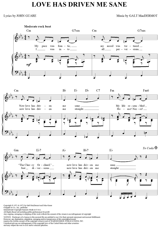 "Love Has Driven Me Sane" Sheet Music by Galt MacDermot