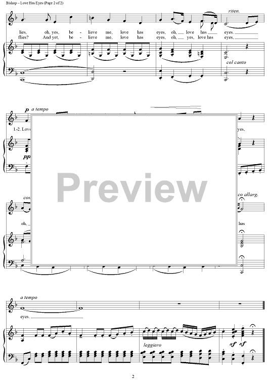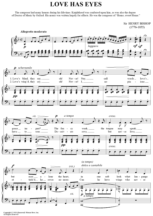 "Love Has Eyes" Sheet Music by Henry Bishop