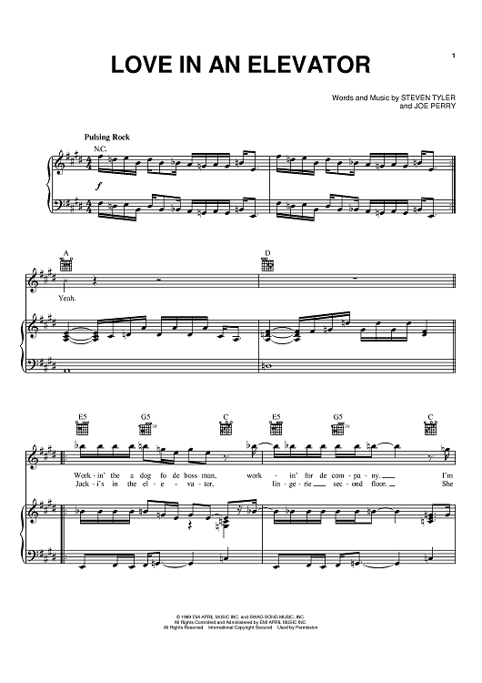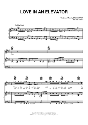 Digital Sheet Music for Love In An Elevator by Aerosmith, Steven Tyler, Joe Perry scored for Piano/Vocal/Chords; id:370857