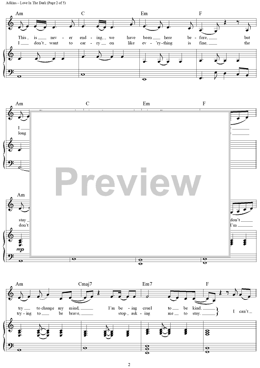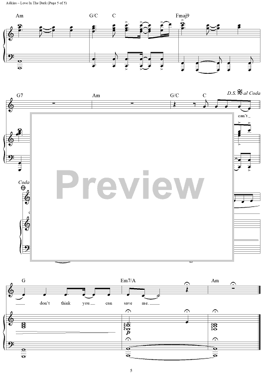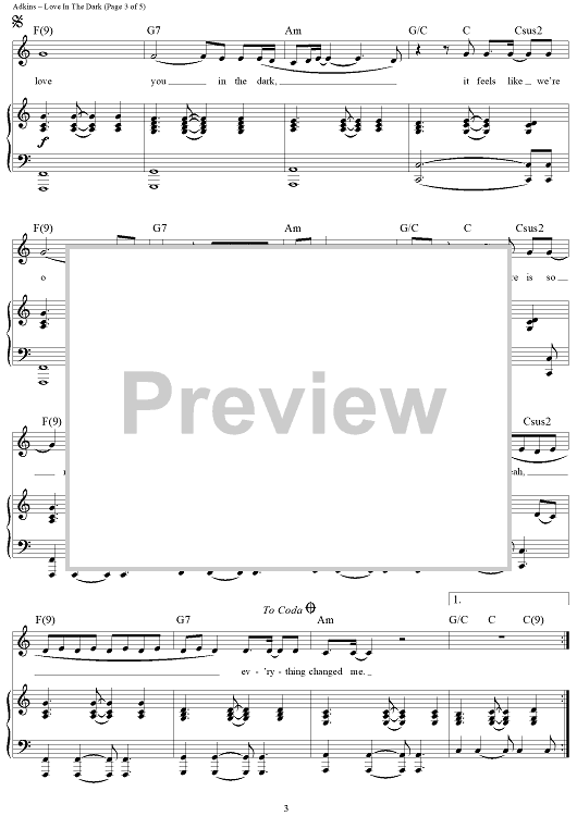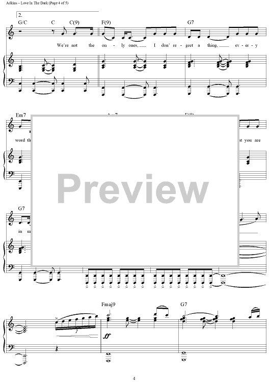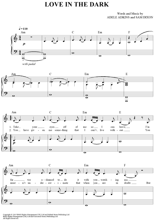 Digital Sheet Music for Love in the Dark by Sam Dixon, Adele Adkins, Adele scored for Piano/Vocal/Chords; id:456339