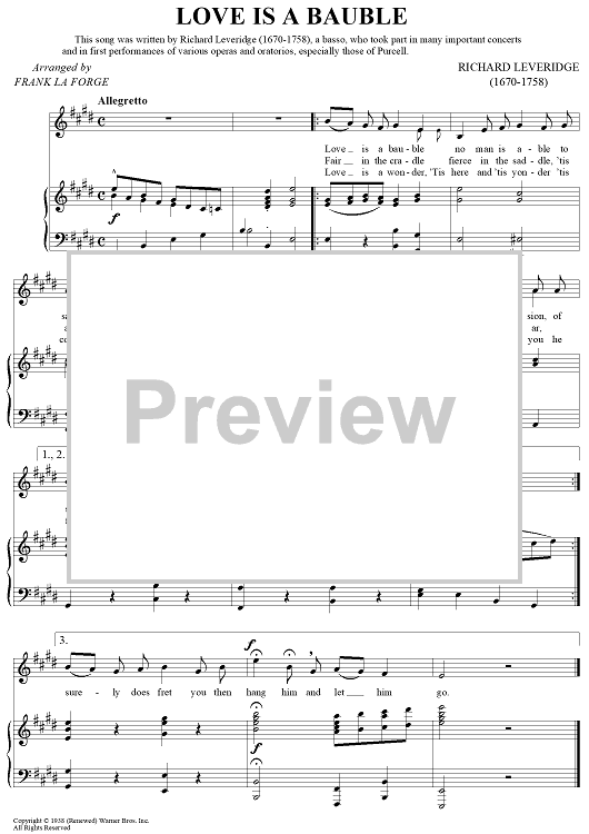 "Love Is A Bauble" Sheet Music by Richard Leveridge