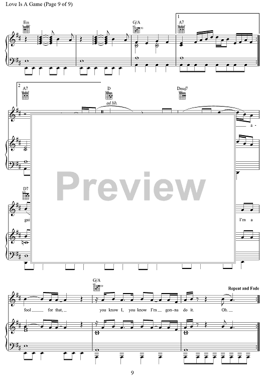 Digital Sheet Music for Love Is A Game by Adele Adkins, Adele, Dean Josiah Cover scored for Piano/Vocal/Chords; id:470081