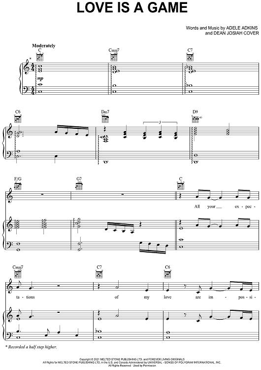 "Love Is A Game" Sheet Music by Adele