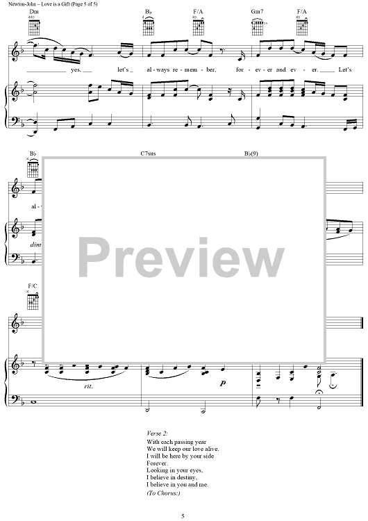 "Love is a Gift" Sheet Music by Olivia Newton-John