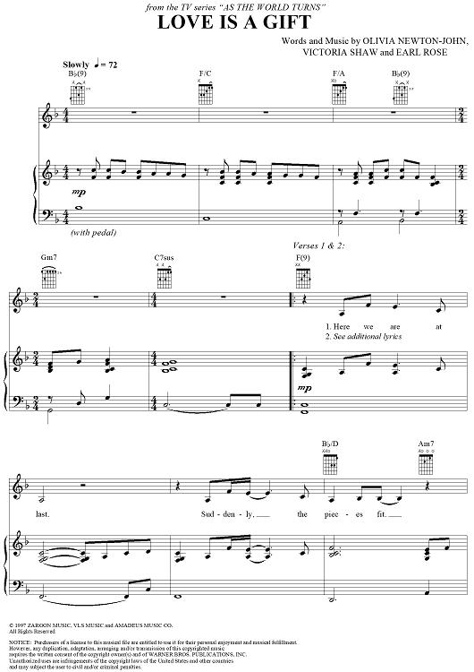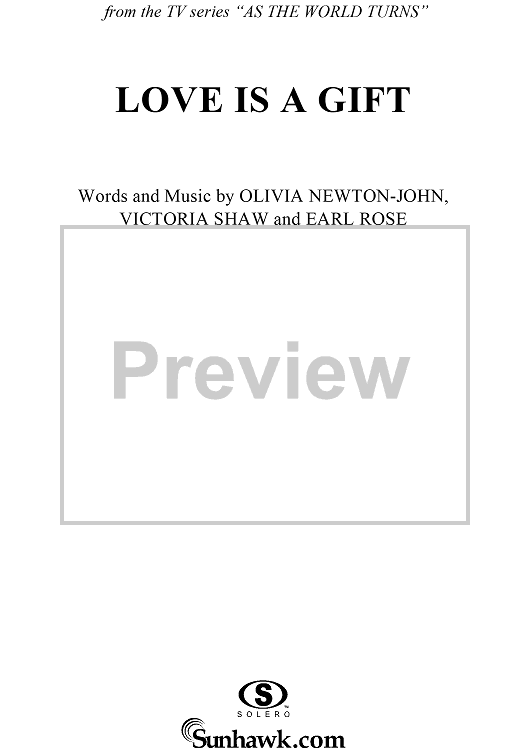Digital Sheet Music for Love is a Gift by Victoria Shaw, Earl Rose, Olivia Newton-John scored for Piano/Vocal/Chords; id:253384