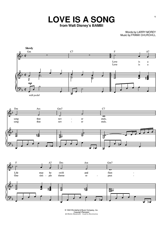 Digital Sheet Music for Love Is A Song by Larry Morey, Frank Churchill, Donald Novis scored for Piano/Vocal/Chords; id:379327