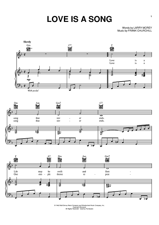 Digital Sheet Music for Love Is A Song by Larry Morey, Frank Churchill scored for Piano/Vocal/Chords; id:389524