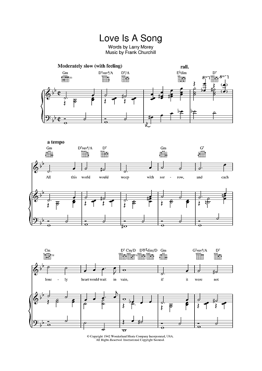 Digital Sheet Music for Love Is A Song by Larry Morey, Frank Churchill scored for Piano/Vocal/Chords; id:394990