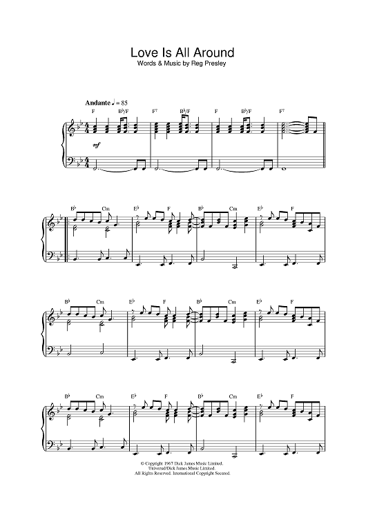 Digital Sheet Music for Love Is All Around by Reg Presley, The Troggs scored for Piano; id:385376