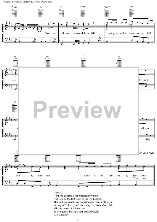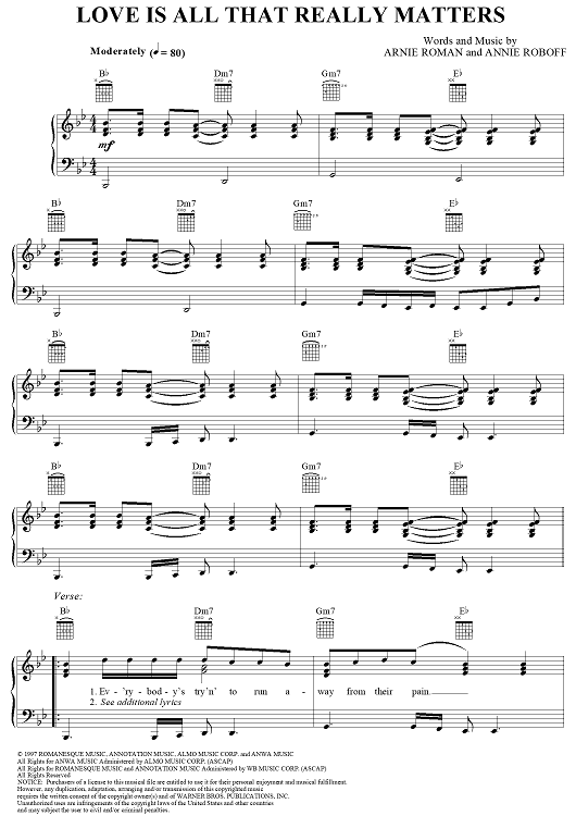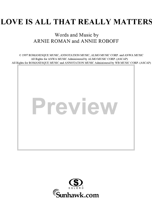 Digital Sheet Music for Love Is All That Really Matters by Kevin Sharp, Annie Roboff, Arnie Roman scored for Piano/Vocal/Chords; id:112128