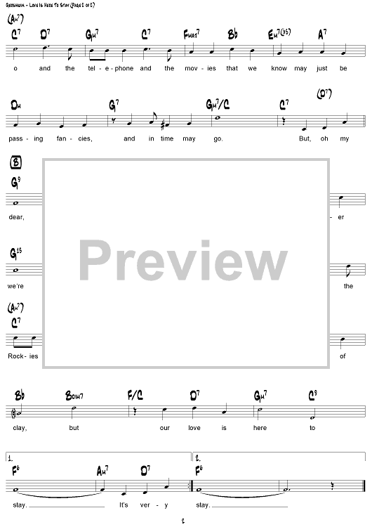 Digital Sheet Music for Love Is Here to Stay by , George Gershwin, Ira Gershwin scored for Lead Sheet; id:307962