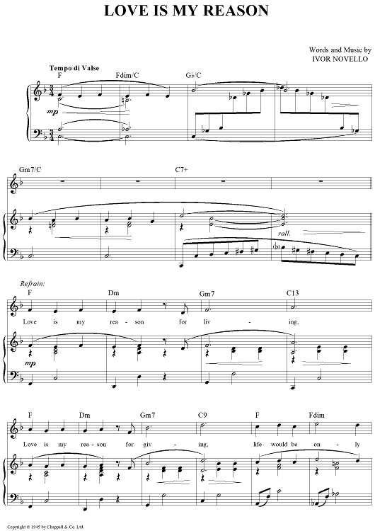 Digital Sheet Music for Love Is My Reason by Ivor Novello scored for Piano/Vocal/Chords; id:425796