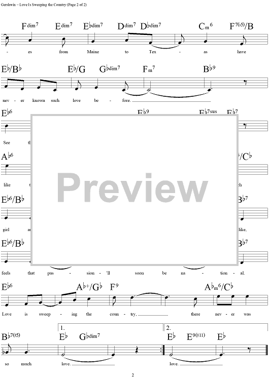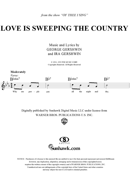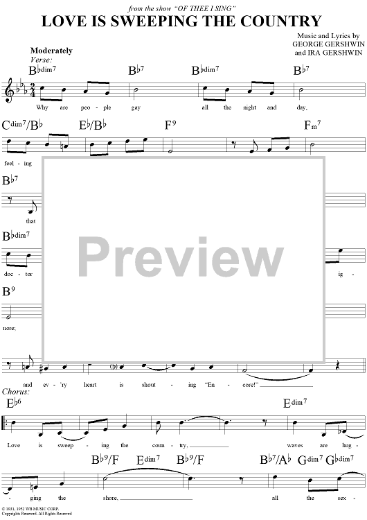 Digital Sheet Music for Love Is Sweeping the Country by , George Gershwin, Ira Gershwin scored for Lead Sheet; id:283657