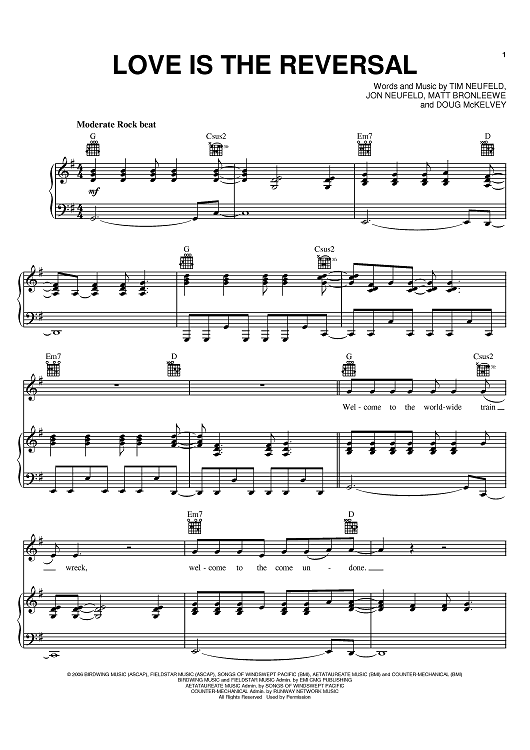 Digital Sheet Music for Love Is The Reversal by Tim Neufeld, Jon Neufeld, Starfield, Matt Bronleewe, Doug McKelvey scored for Piano/Vocal/Chords; id:393595