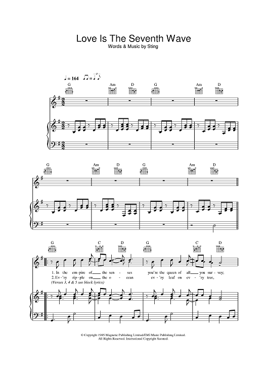 Digital Sheet Music for Love Is The Seventh Wave by Sting scored for Piano/Vocal/Chords; id:387204
