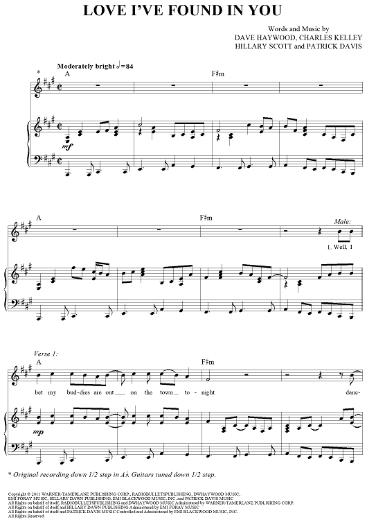 Digital Sheet Music for Love I've Found in You by Hillary Scott, Lady Antebellum, Charles Kelley, Dave Haywood, Patrick Davis scored for Piano/Vocal/Chords; id:452041
