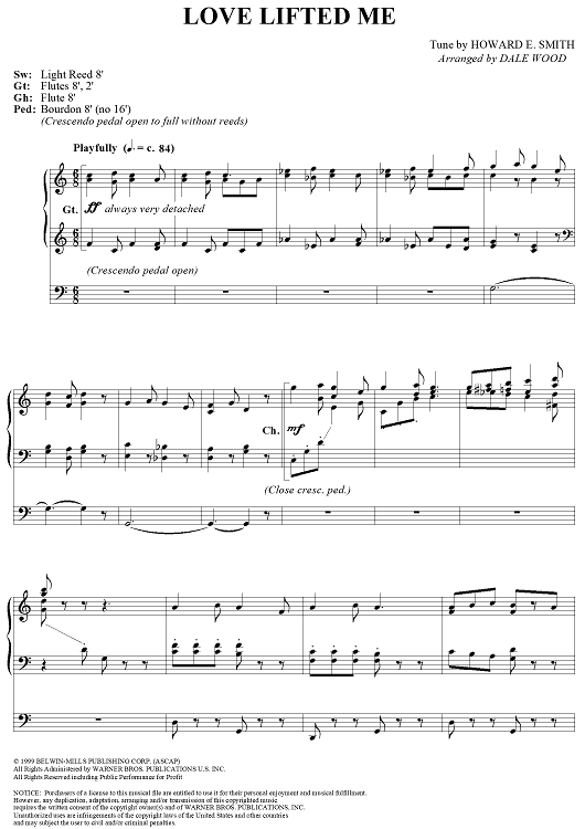 Digital Sheet Music for Love Lifted Me by Howard E. Smith, Dale Wood scored for Organ Solo; id:256742