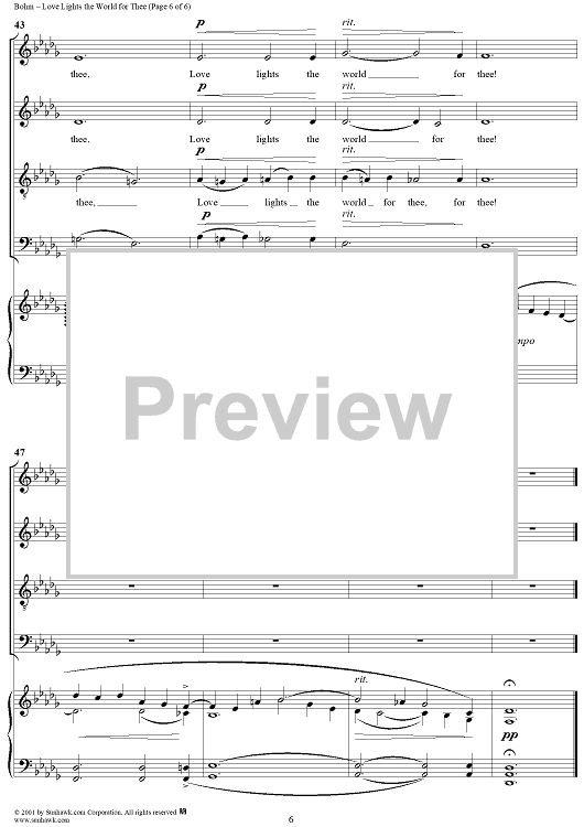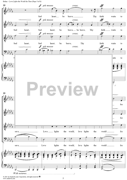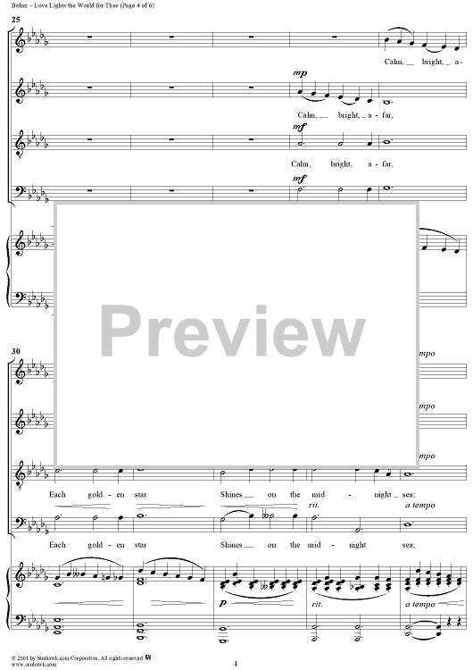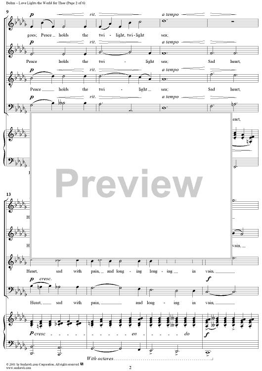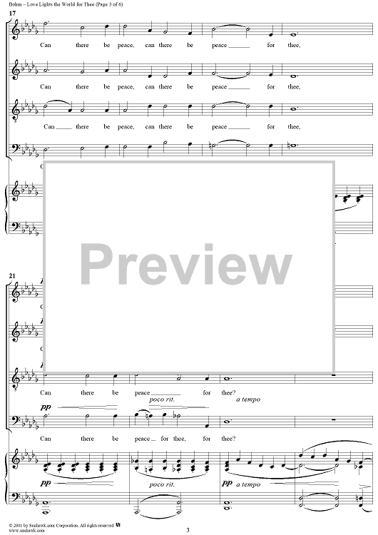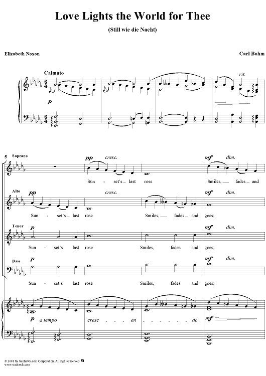Digital Sheet Music for Love Lights the World for Thee by Carl Bohm, Elizabeth Noxon scored for Four-part Mixed Chorus; id:262660