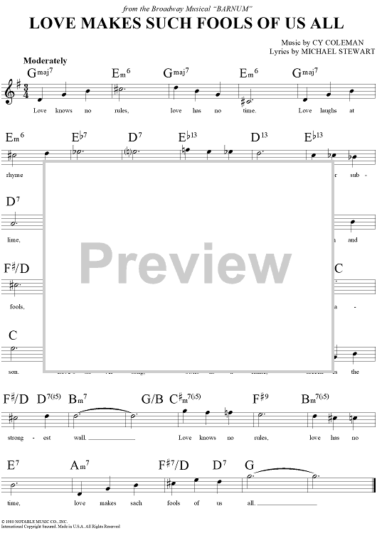 Digital Sheet Music for Love Makes Such Fools of Us All by Cy Coleman, Michael Stewart scored for Lead Sheet; id:272357