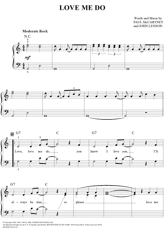 Digital Sheet Music for Love Me Do by Paul McCartney, The Beatles, John Lennon scored for Easy Piano/Vocal/Chords; id:448674