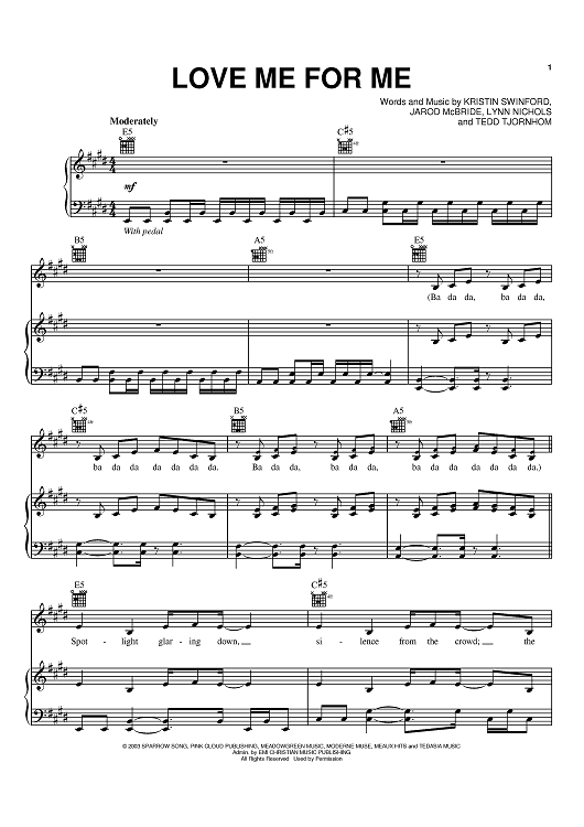 Digital Sheet Music for Love Me For Me by Jarod McBride, Lynn Nichols, Kristin Swinford, ZOEgirl scored for Piano/Vocal/Chords; id:373162