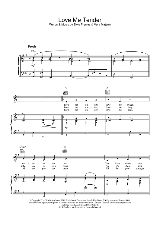 Digital Sheet Music for Love Me Tender by Elvis Presley scored for Piano/Vocal/Chords; id:375600