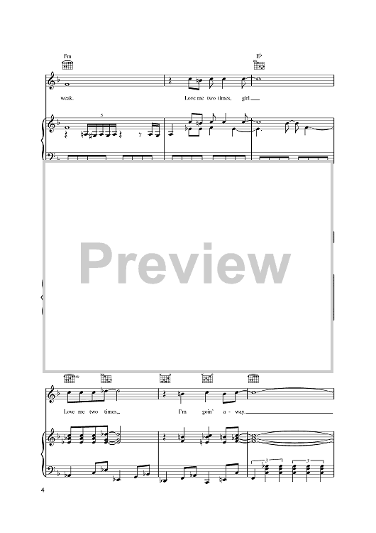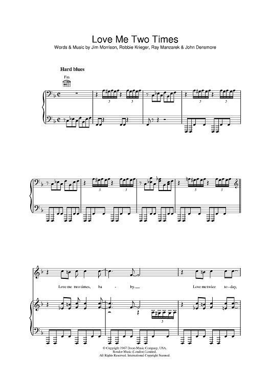 Digital Sheet Music for Love Me Two Times by The Doors, Jim Morrison, Robbie Krieger, John Densmore, Ray Manzarek scored for Piano/Vocal/Chords; id:390956