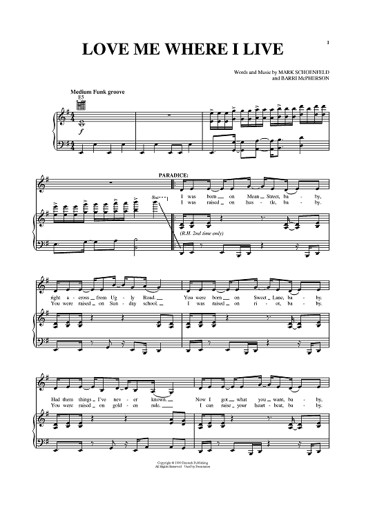 Digital Sheet Music for Love Me Where I Live by Barri McPherson, Mark Schoenfeld scored for Piano/Vocal/Chords; id:390702