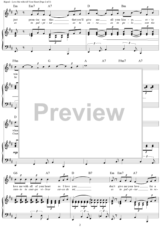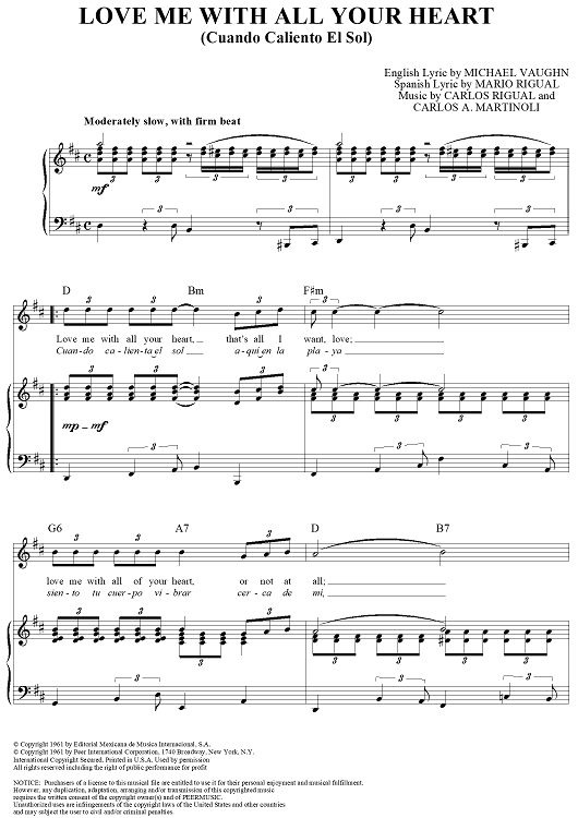 Digital Sheet Music for Love Me With All Your Heart (Cuando Caliento El Sol) by Carlos Rigual, Mario Rigual, Carlos A. Martinoli scored for Piano/Vocal/Chords; id:318361