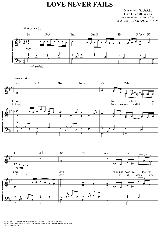 Digital Sheet Music for Love Never Fails by Jim Brickman, Marc Jordon, Amy Sky, Johann Sebastian Bach, Traditional scored for Piano/Vocal/Chords; id:292233