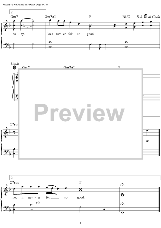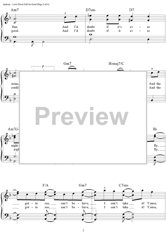 Digital Sheet Music for Love Never Felt So Good by Michael Jackson, Paul Anka scored for Easy Piano/Vocal/Chords; id:447331