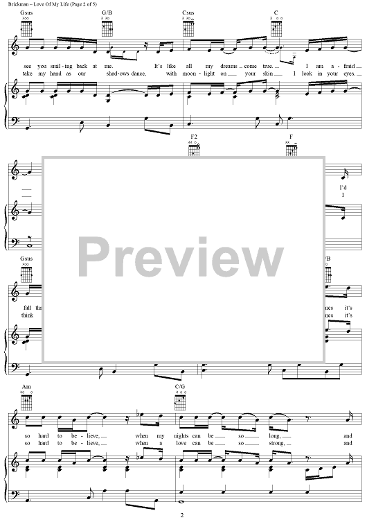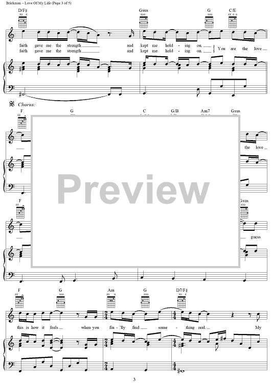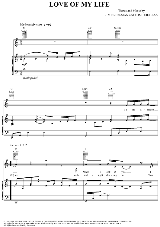 Digital Sheet Music for Love of My Life by Jim Brickman, Tom Douglas scored for Piano/Vocal/Chords; id:274855