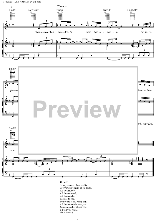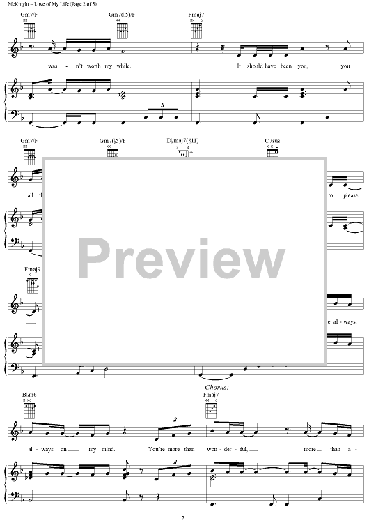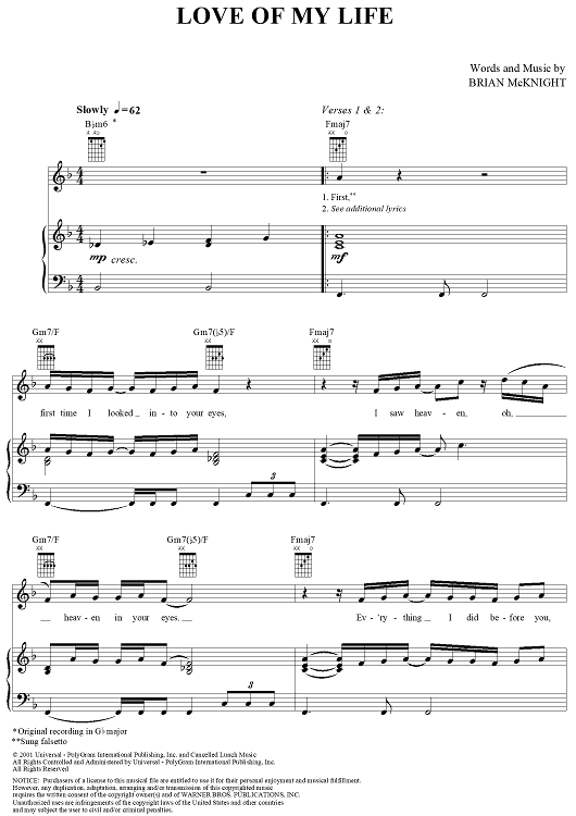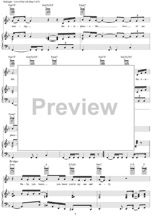 Digital Sheet Music for Love of My Life by Brian McKnight scored for Piano/Vocal/Chords; id:284454