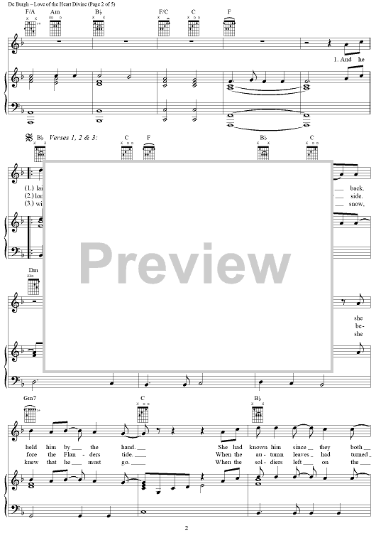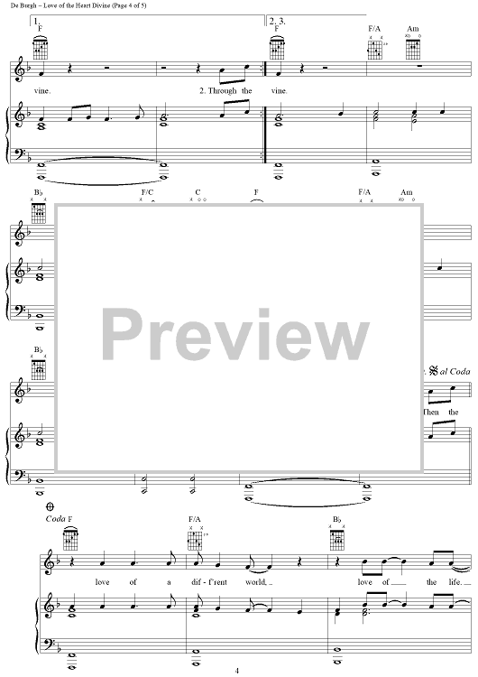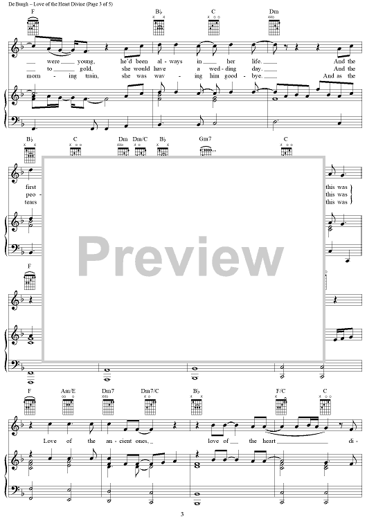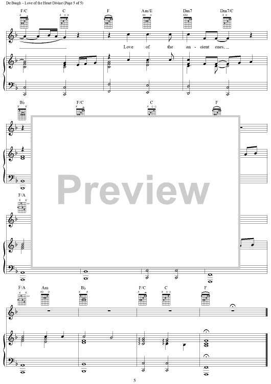 Digital Sheet Music for Love of the Heart Divine by Chris DeBurgh scored for Piano/Vocal/Chords; id:241598