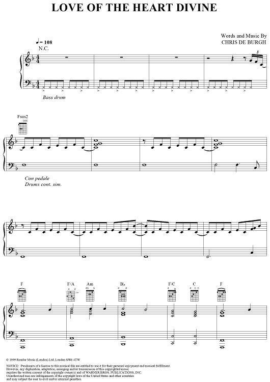 "Love of the Heart Divine" Sheet Music by Chris DeBurgh