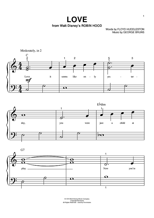 Digital Sheet Music for Love by George Bruns, Floyd Huddleston scored for Big Note Piano; id:369928